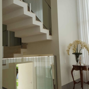 Atualmente, vem crescendo cada vez mais a tendência de se fazer escadas com corrimão de vidro, por sua estética e beleza.